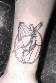 男生小腿上黑白几何元素手部用刀纹身图片