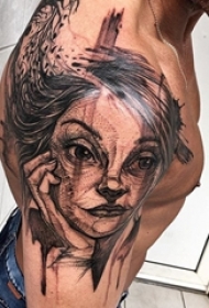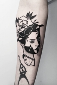 黑白点刺技巧抽象线条人物肖像纹身图案