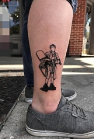 男生小腿上黑白线条个性的人物肖像纹身图片