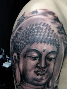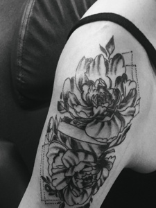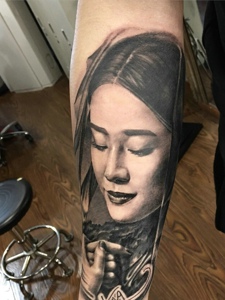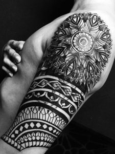 大臂活跃充肺的黑白鲤鱼纹身图片