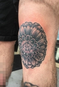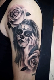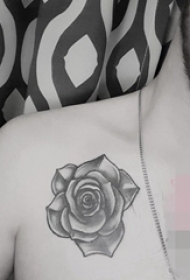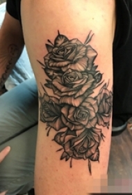 男生肩部黑白灰风格点刺技巧植物素材花朵纹身图片
