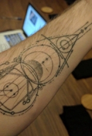手臂黑白灰风格点刺几何元素简约线条纹身图片