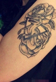 大腿几何元素植物素材花朵纹身图片