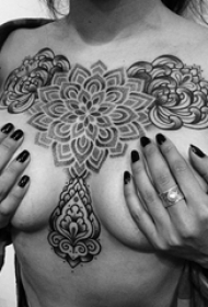 男生胸部黑白灰风格点刺技巧几何元素狮子王纹身动物图片