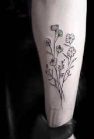 一组女生黑白纹身点刺技巧简约线条纹身植物纹身素材花朵纹身图案