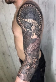 写实大黑臂纹身--6张欧美写实黑色大花臂纹身图案