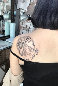男生手臂上黑灰素描创意花纹与眼睛纹身图片