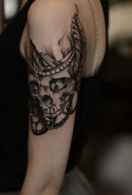 大臂欧美黑灰邪恶美人鱼纹身图案