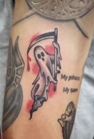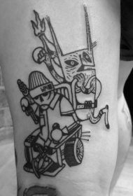 手臂上的大黑灰怀表人物肖像等花臂纹身图片