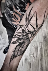 山猫纹身:创意的一组黑灰山猫纹身图片