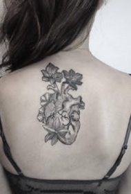 心脏纹身:黑灰色的一组素描心脏纹身图案