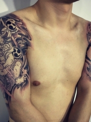 黑灰色现实主义风格大面积纹身图案