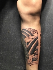 小腿一款具有魅力的黑灰纹身图案