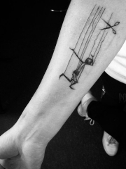 手前臂上可爱的黑灰色猫头鹰纹身图片