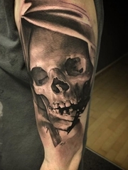 黑灰色现实风格恐怖的骷髅头纹身图案