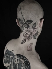 性感迷人的黑灰色纹身玫瑰花纹身图案来自于纹身师奥利弗