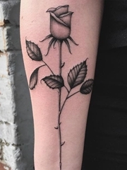 漂亮的黑灰色细线条玫瑰花纹身图案来自于纹身师爱德温