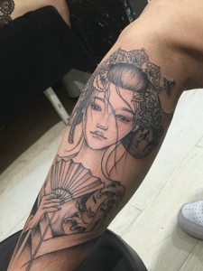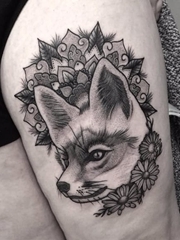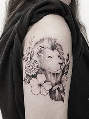 大臂帅气豪迈的黑灰貔貅纹身图案