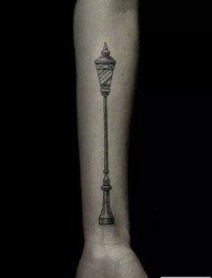 手臂部位唯美的黑灰色橄榄枝纹身图案