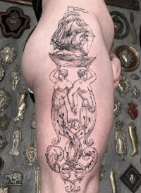 手臂大腿黑灰纹身文艺复兴题材纹身图片