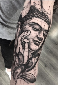 一组适合小腿和手臂的黑灰点刺纹身图案作品欣赏