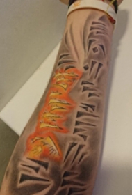素描纹身 男生手臂上素描的黑灰人物和动物纹身图片