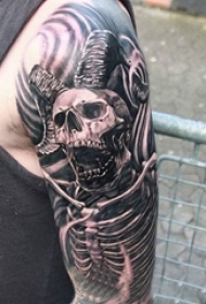 骷髅纹身 男生小腿上黑灰的骷髅纹身图片