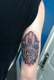 黑灰纹身 男生手臂上黑灰纹身法蒂玛之手纹身图片