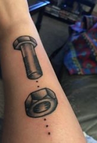 黑灰纹身 男生手臂上黑灰纹身螺母和螺钉纹身图片