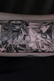 男生手臂上黑灰点刺几何抽象线条毕加索名画纹身图片