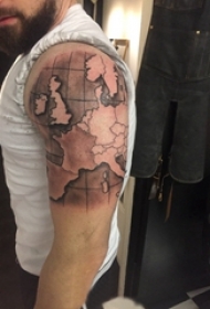 男生手臂上黑灰素描点刺技巧创意文艺地图纹身图片