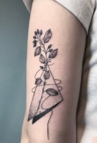 自然素雅之美的黑灰植物纹身图
