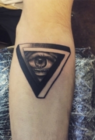 男生手臂上黑灰素描点刺技巧几何元素上帝之眼纹身图片