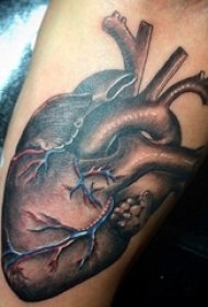 女生手臂上黑灰素描点刺技巧创意心脏纹身图片