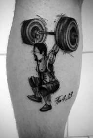 健身相关的黑灰健身器材纹身图案作品图片10张