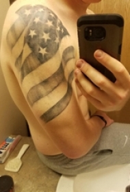 美国国旗纹身 男生手臂上黑色的旗帜纹身图片