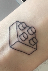 女生手臂上黑色线条素描经典几何元素积木纹身图片