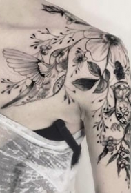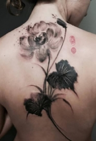 一组黑灰色中国风水墨纹身图案作品欣赏