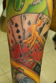 手臂彩色扑克牌和红骰子纹身图片