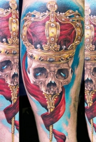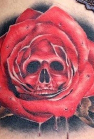 腿部彩色红玫瑰与骷髅纹身图片
