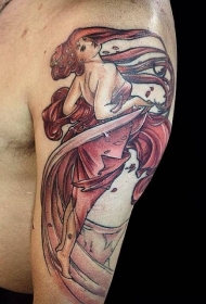 肩部典型的插画风格女人纹身图案
