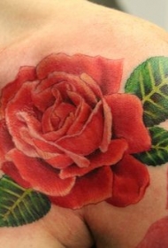女性肩部彩色红玫瑰纹身图片