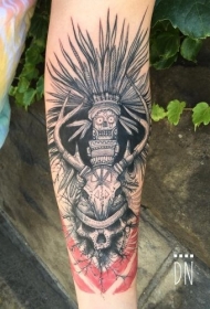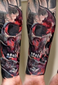 手臂华丽的彩色邪教头骨图腾纹身图片