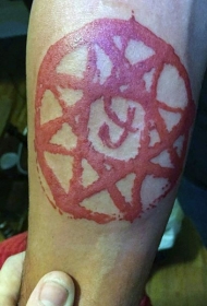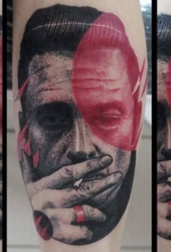 手臂彩色烟熏猴和红色盾牌纹身图案