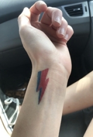 男生手腕上红黑素描创意文艺闪电纹身图片