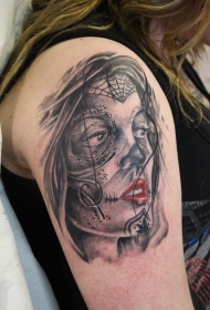 女生手臂墨西哥风格的女性肖像彩色纹身图案
