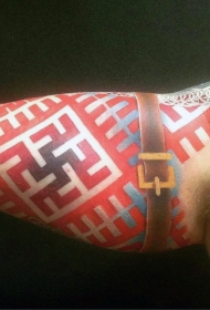 印象深刻的红色装饰符号和皮带手臂纹身图案