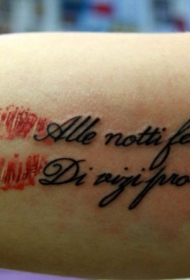 红色唇印和意大利字母手臂纹身图案