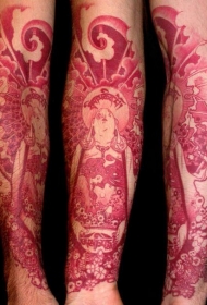 手臂独特的红色佛像纹身图案