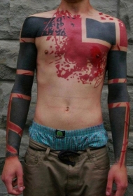 黑蜘蛛和红色背景撕皮胸部纹身图案